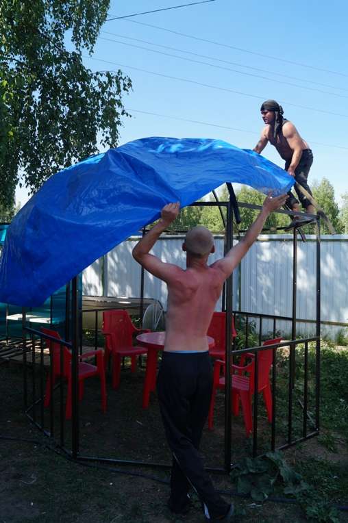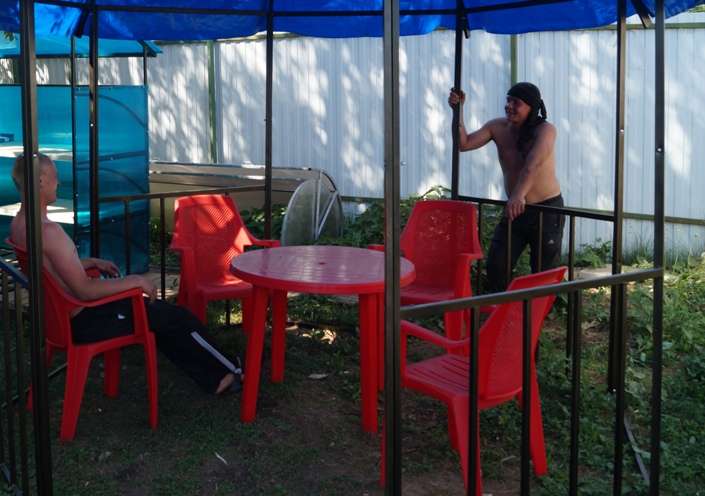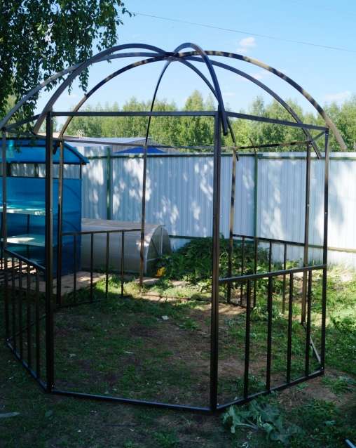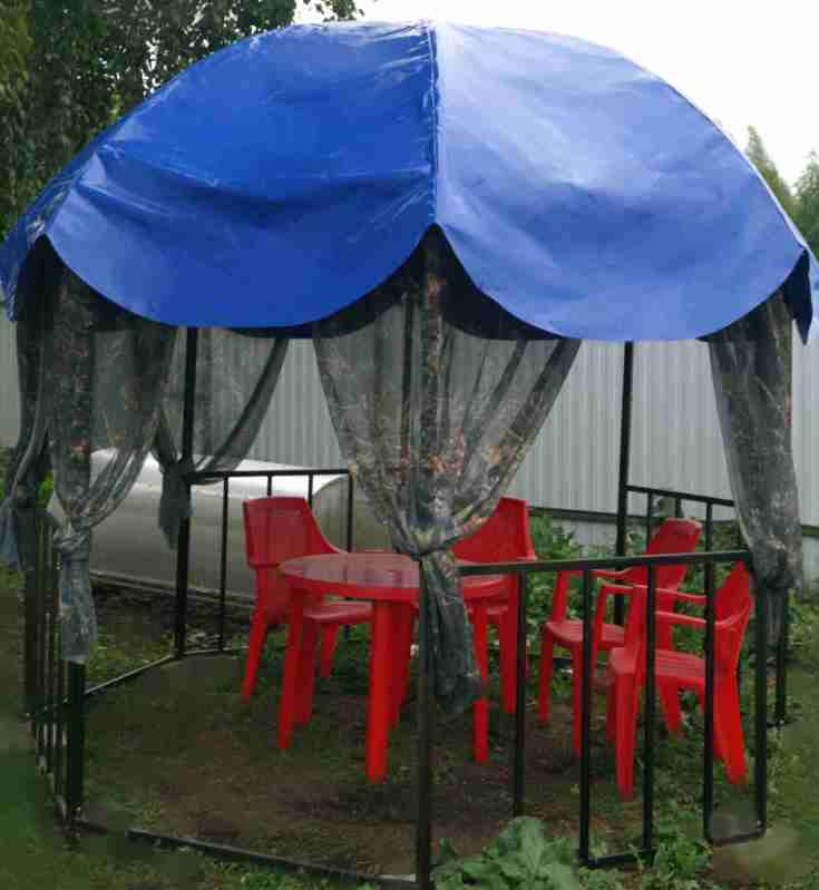 БЕСЕДКА из металлокаркаса, восьмигранная, диаметром 2.8 м. Может служить навесом и для бассейна.